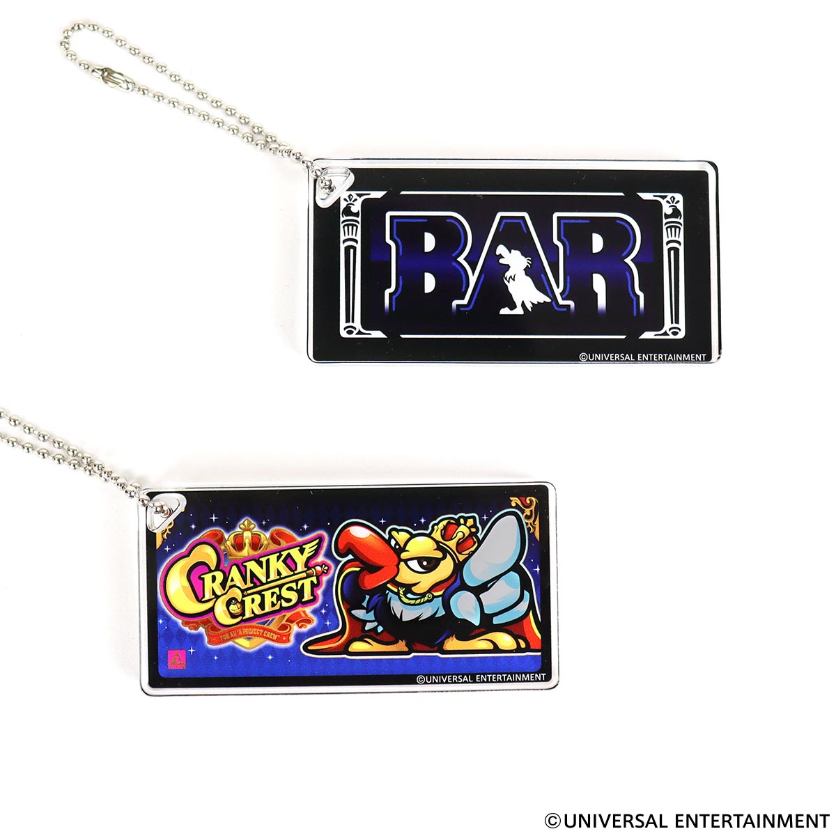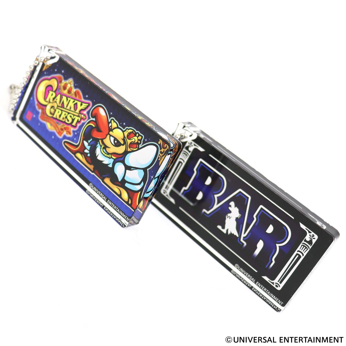 スロット新機種「クランキークレスト」のパネルとBAR図柄のデザインがアクリルキーホルダーになりました!