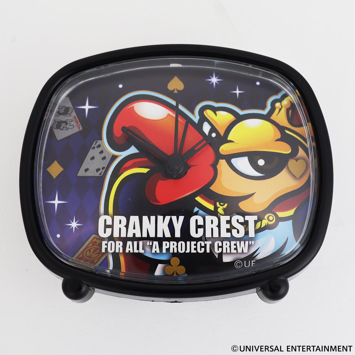 スロット新機種「クランキークレスト」の世界観をデザインした、かわいいサイズの置き時計。