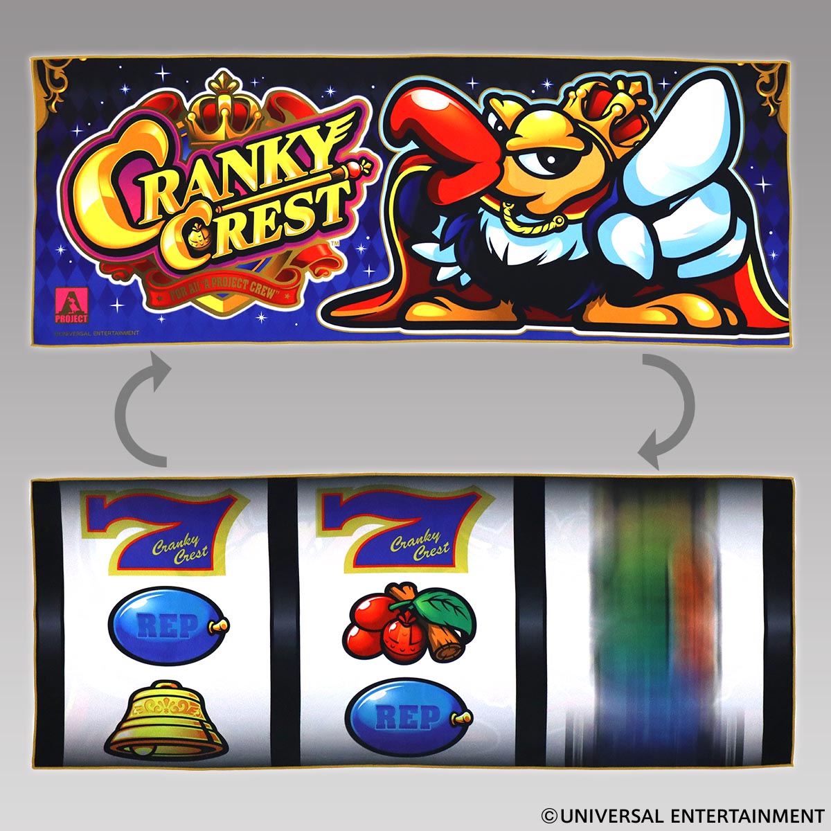 スロット新機種「クランキークレスト」のリール配列を忠実に再現したクッションが登場!