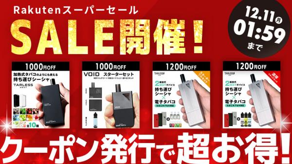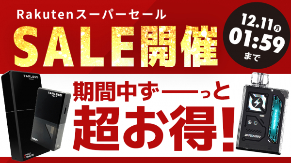 株式会社ドローム(本社:千葉県柏市)は、12月4日(月)20:00~12月11日(月)01:59まで開催している楽天スーパーセールで期間中電子タバコ製品が超お買い得!