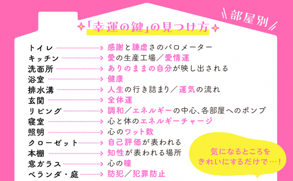 「そうじ力」による磁場の改善、心の改善から運気好転を提唱する。