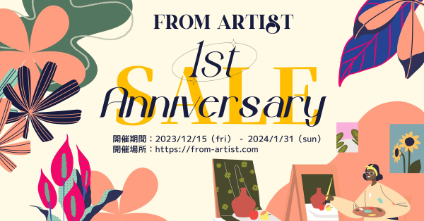 BUSCA合同会社(本社:茨城県水戸市、代表:戸井田 翔馬)は、日本全国のアーティストから好きな作品が見つけられる「FROM ARTIST」にて" 1stアニバーサリーセール "と題し、2023/12/15(fri) - 2024/1/31(sun)セールイベントを開催致します。