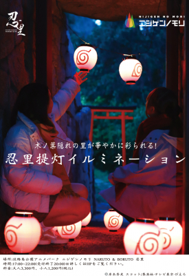 「NARUTO&BORUTO 忍里」初となる、オリジナル“和風イルミネーション”を開催。「地の巻」エリア~ラーメン「一楽」までの道に提灯を照らし、夜の忍里を今までにないライトアップでお楽しみいただけます。合わせて、イルミネーションやプロジェクションマッピング等の夜のコンテンツに特化した「ナイトチケット」を同期間限定で販売いたします。