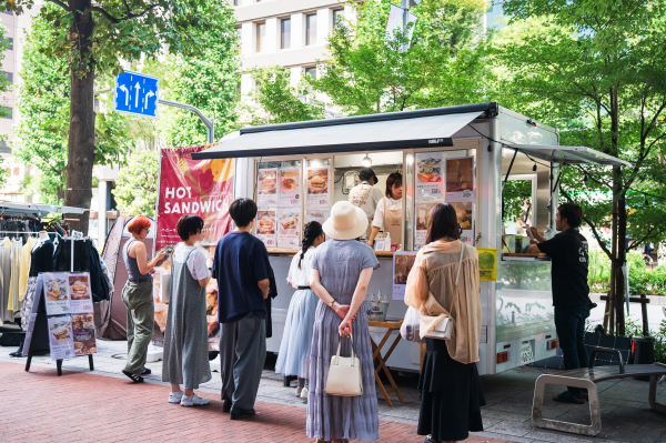 商品開発会と社内での試食会を経て、実際のお客様にも『マッシュルームのごろごろポタージュ』を食べてもらい意見をもらうべく、narumiさんにも同席をしてもらい、毎週木曜に出店している「飯田橋アイガーデンテラス」で試食会を実施しました。