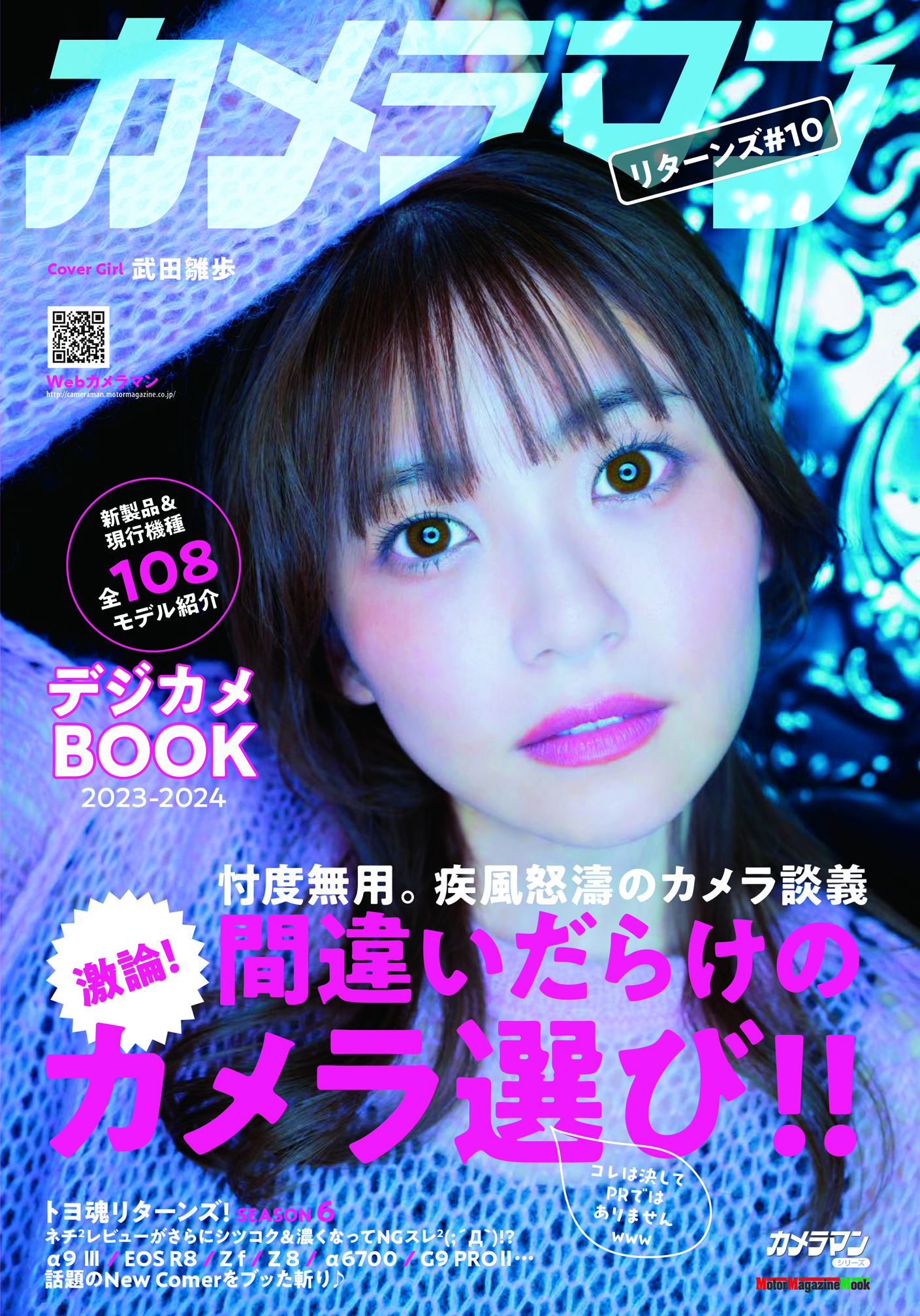 そして今回紹介する『カメラマン リターンズ!』は、4年目突入の10号目。年末恒例の鉄板企画で、『月刊カメラマン』誌時代の大人気企画『激論!間違いだらけのカメラ選び!!』の2023-2024版です。人気写真家論客 10名による、2023年に発売された新型カメラの辛口論評を全公開。さらに最新モデル+現行機種108モデルのレビュー&紹介を収録しました。