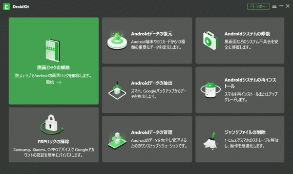 DroidKitは、Samsungの携帯電話から失われたデータを復元するだけでなく、Samsungの画面を簡単に解除するのに役立つプロのAndroid問題解決ソフトウェアです。DroidKitは、次のような優れた特徴を持っています。
