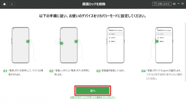 ステップ4:DroidKitの指示に従って「次へ」ボタンをタップしてください。デバイスをリカバリーモードにするように指示された後、アプリの指示に従って、Samsung Galaxy S22デバイスのキャッシュパーティションを削除します。