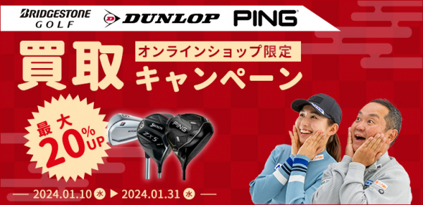 株式会社ゴルフ・ドゥ(本社 さいたま市 代表取締役社長:佐久間功)が運営するゴルフドゥ!オンラインショップ内のオンライン買取限定で1月31日(水)までの期間、対象ゴルフクラブの買取査定が最大20%増額となるキャンペーンを実施中です。対象となるゴルフクラブブランドは「ブリヂストン」、「ダンロップ」、「ピン」のAランク・Bランク・Cランクのクラブです。
