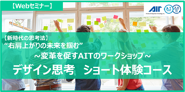当セミナーを受講いただき、アンケートにご回答いただいた方には、受講後3ヶ月以内に実施される「【新時代の思考法】 "右肩上がりの未来を掴む" ~変革を促すAITのワークショップ~ デザイン思考 1dayコース」のチケット代金が割引になるクーポンを差し上げます!