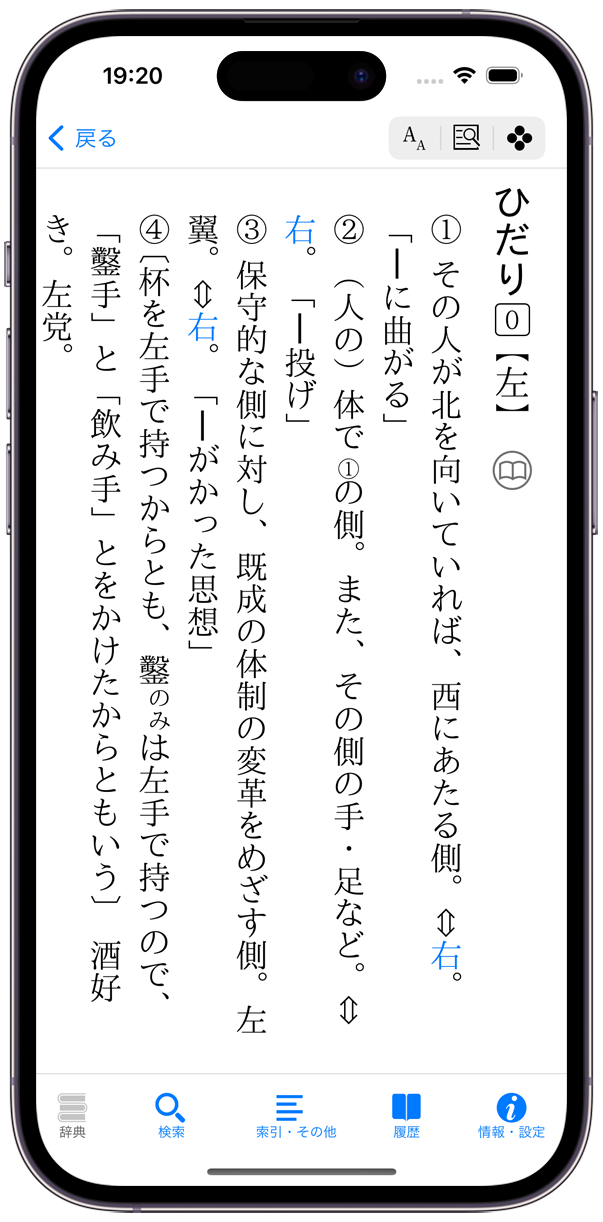 ・本文中の用語を選択することで次々に辞書引きができるジャンプ検索機能(自辞典検索)