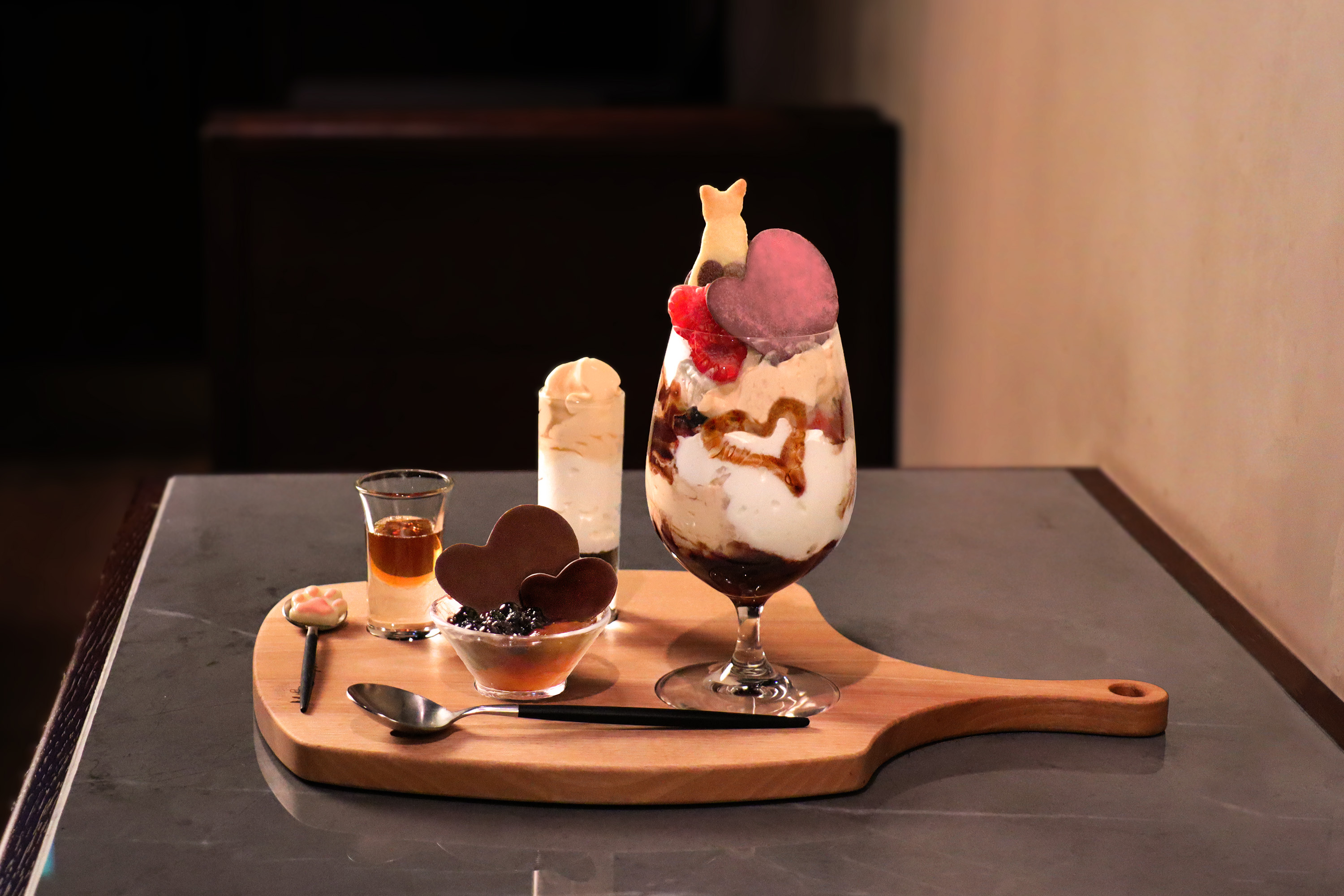 リッチなチョコレートとキャラメル生クリームの絶妙な甘さに、ダージリンティーのジュレの爽やかな苦みが相まって、幅広い方に喜ばれる、甘すぎない軽やかなパフェに仕上がっています。愛らしさと美味しさが共演する、バレンタインにぴったりな一品です。