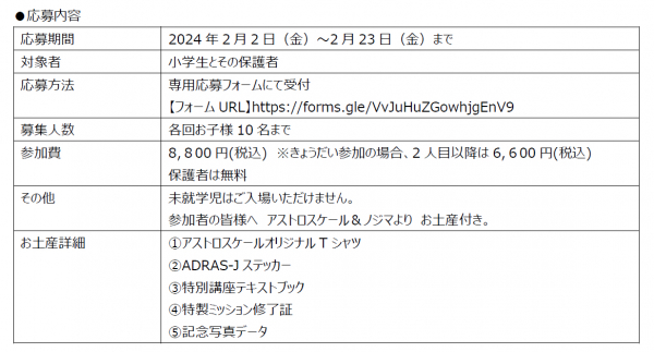 株式会社ノジマ(神奈川県横浜市、代表執行役社長 野島廣司、以下「ノジマ」)と株式会社アストロスケール(東京都墨田区、代表取締役社長 加藤英毅、以下「アストロスケール」)は、小学生を対象とした春休みスペシャル体験学習イベント「春休み 宇宙こども1Dayカレッジ」を3月31日(日)に開催いたします。