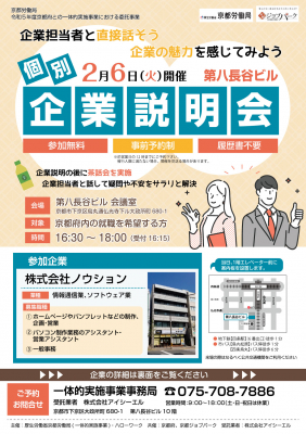 2,3月開催 個別企業説明会(第八長谷ビル)一覧