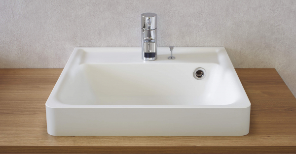 “憧れの空間を実現できる洗面化粧台”をコンセプトに、トレンドとなりつつあるベッセル型洗面化粧台を当社では初めてラ インナップしました。ベッセル型とは、カウンターの上に洗面ボ ール(ベッセル/容器)が乗っている形で、近年、造作洗面で人気です。