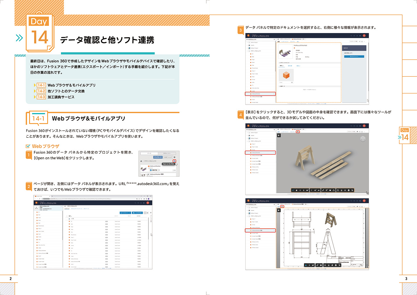 身の回りから作りたいものを探し、構成を考え、fusionでモデリングと図面を作成し、実際にパーツを組み立てるまでの流れを、1日1時間の14日間構成でご用意しました。