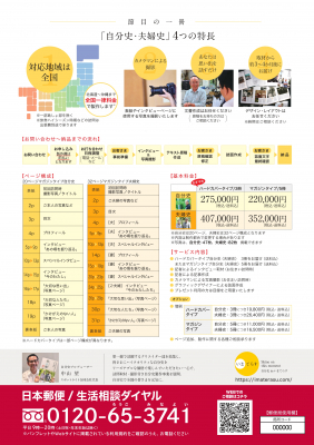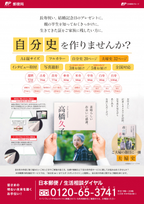 日本郵便が全国の郵便局で提供を開始する「郵便局の終活日和」のメニューの一つとして、ご自宅やご希望の場所へ伺い、インタビューおよび写真撮影を行い、お客さまの人生史を作成して製本し、お届けします。