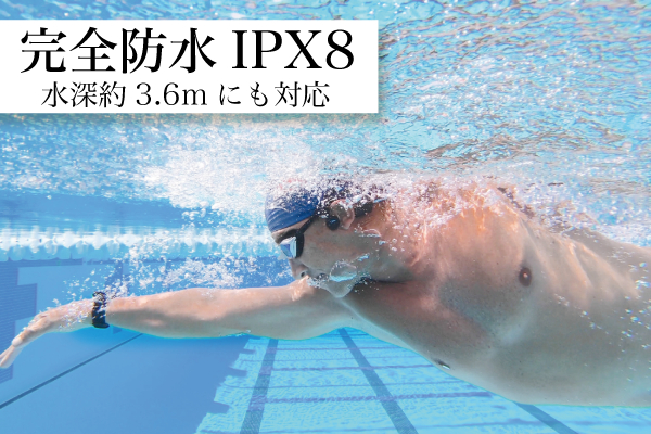 水中での使用に完全対応する、100%防水機能【防水等級IPX8】を搭載。