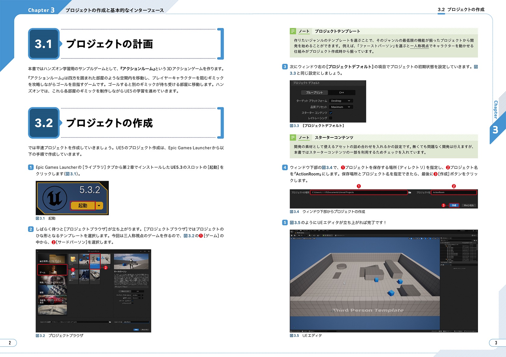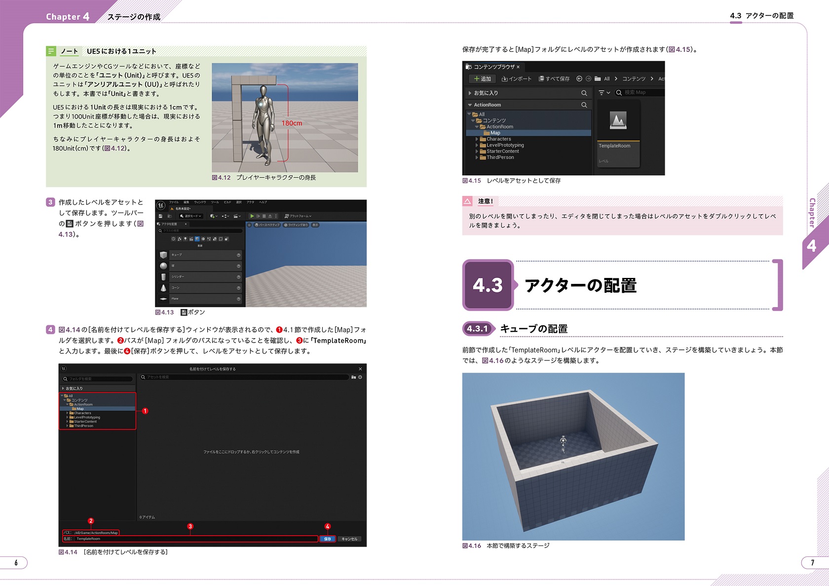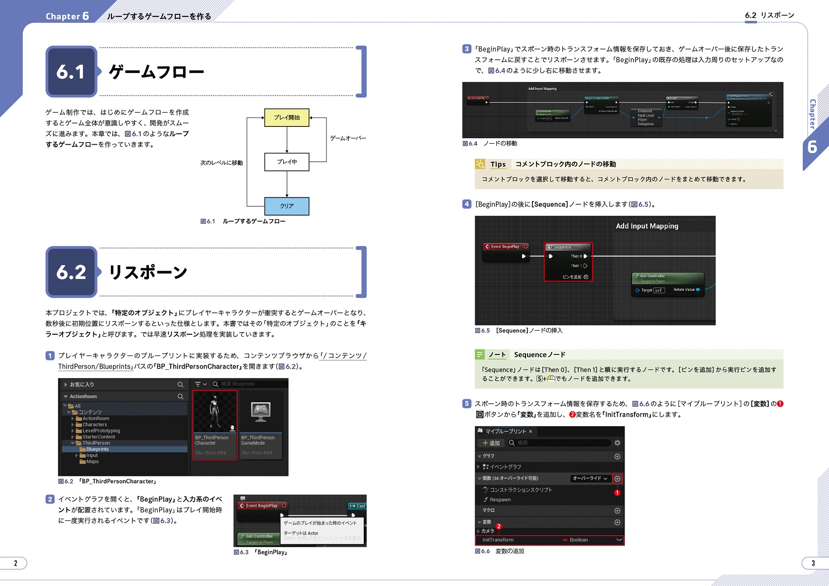 オリジナルのアクションゲームの制作過程をステップ・バイ・ステップのチュートリアルで丁寧に解説しているため、手を動かしながらUE5の各機能を広く学べる内容となっています。