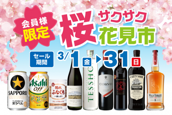 全国に187店舗で酒の専門店をチェーン展開する株式会社リカーマウンテン(本社:京都市)は、3月1日(金)~31日(日)の間、深夜営業店舗などを除く一部店舗で「会員様限定 桜サクサク花見市セール」を開催いたします。