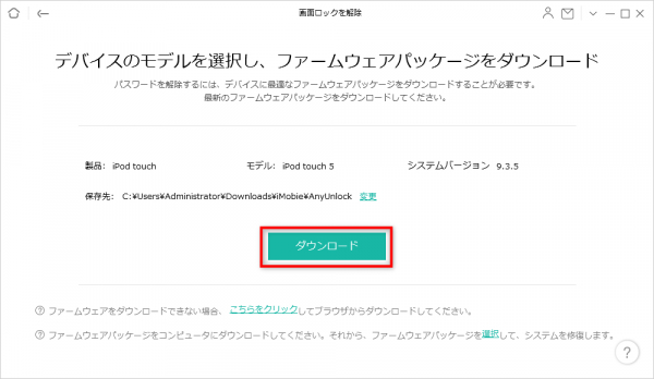 ステップ2、ケーブルでiPhoneをパソコンに接続して、「開始」をクリックします。そして、「ダウンロード」をクリックして、必要なiOSデバイス用のファームウェアをダウンロードします。