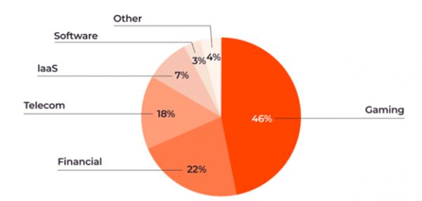 ● 攻撃標的のビジネスセクタはゲーミング(46%)、ファイナンス(銀行・ギャンブルサービスを含む)(22%)、テレコム(18%)の順。