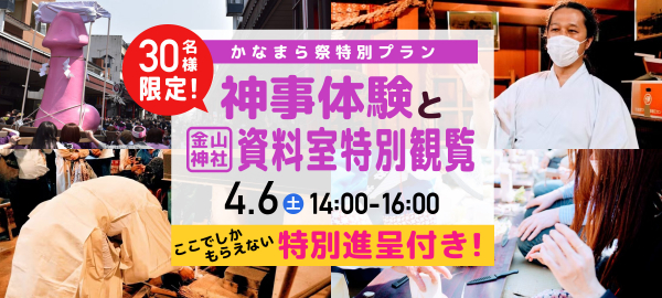 【30名限定】4月6日(土)開催!かなまら祭2024特別プラン~宵宮神事体験と金山神社資料室特別観覧~