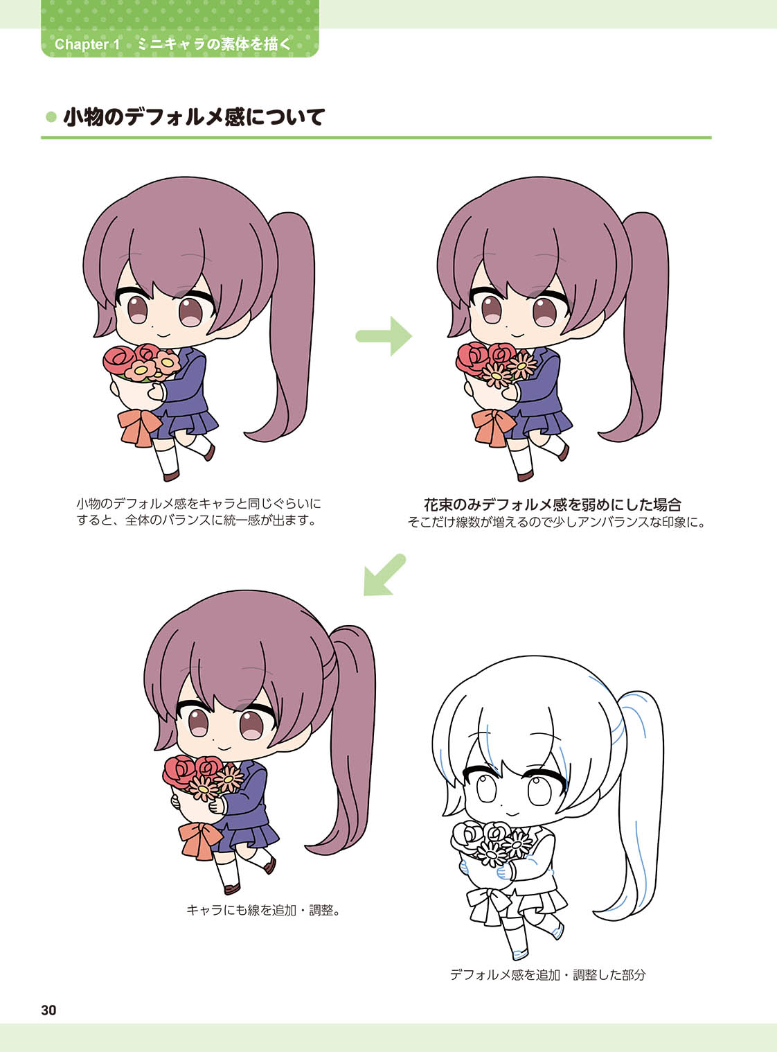 ミニキャラを描くときの資料としても、デフォルメの仕方の参考としても役立つこと間違いなし。