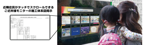 ■グリーンサイト施工体系図のデジタルサイネージ表示により貼り替え作業を不要に■