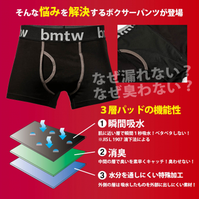 気になって楽しく時間を過ごせない。そんな悩みに真正面から取り組んだ「BM・PROTECTボクサーパンツ」が、ついに発売。