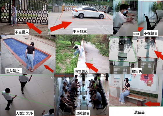 AIでスマート監視(駐車、境界侵入、忘れ物、遺留品、徘徊、人数カウントなど)