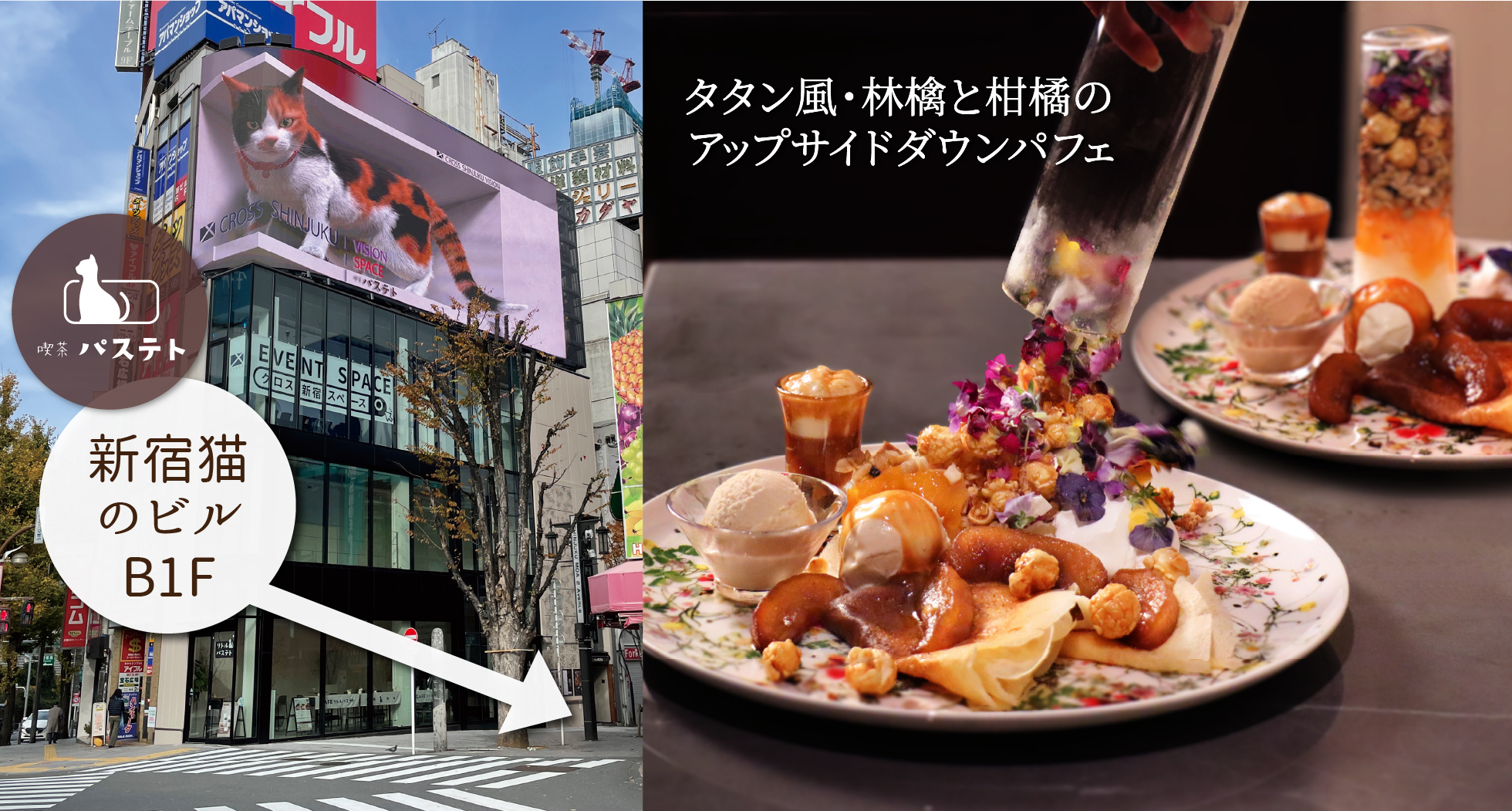 株式会社アズフードシステムズ(本社:東京都中央区、代表取締役:森田威)が運営する、新宿駅東口すぐの喫茶店「喫茶 パステト」は、新しいパフェの世界を切り拓く、体験型『タタン風・林檎と柑橘のアップサイドダウンパフェ』を、2024年4月10日(水)より期間限定で発売いたします。