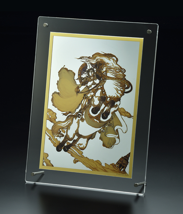 天野喜孝の幻想的で優美な作品を、その雰囲気を損なうことなく、特殊な金属加工技術を用いて透明感のあるアートミラーを作りました。