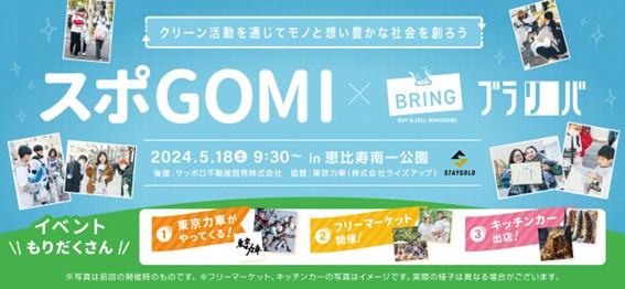 「NEXT REUSE CULTURE」を経営理念とし、ブランドリユース事業を展開する株式会社STAYGOLD(本社:東京都渋谷区、代表:柏村淳司、以下「当社」)は、当社主催クリーンイベント「スポGOMI×STAYGOLD in 恵比寿」を、2024年5月18日(土)に開催することをお知らせします。