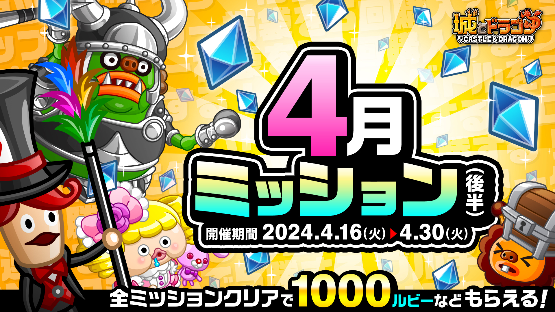株式会社アソビズム(本社:東京都千代田区、代表取締役:大手智之)は、App Store・Google Playにて好評配信中の『城とドラゴン』で、「4月ミッション(後半)」を2024年4月16日(火)より開催いたします。