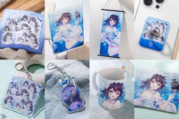 イラストレーター『ぴこぴこぐらむ』さん書きおろしのイラストを使用したマグカップやタペストリーなど、計8種のオリジナルグッズは、2024年5月19日(日)までの期間限定で販売しております。