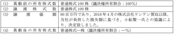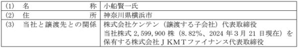 マーチャント・バンカーズ株式会社(以下、マーチャント社)は、本日開催の取締役会をもって、2024年4月30日付でマーチャント社連結子会社である株式会社ケンテンの全株式を譲渡することを決議いたしましたので、お知らせいたします。