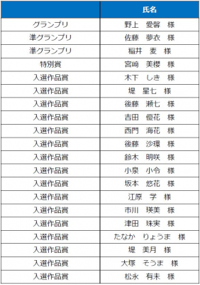 ・入選作品賞 16名(賞状、1,000円分アマゾンギフトカード)