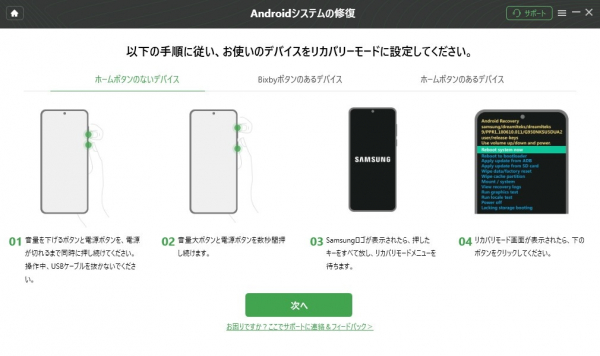 Step 3、指示に従い、ギャラクシーをリカバリモードに入れます。