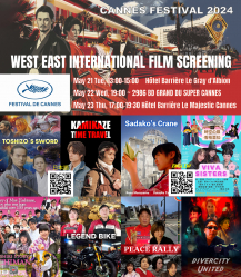 カンヌ国際映画祭の公式会場でユーラシア国際映画祭理事で映画監督・平和活動家樽谷大助が代表を務める株式会社ウエストイーストが主催する、「ウエストイースト国際上映会」が5月21日~23日まで開催される。一般社団法人ユーラシア国際映画祭は、「ウエストイースト国際上映会」のコーディネイトを担当した。