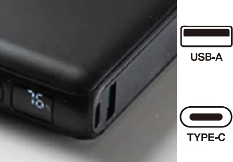 USB-AとTYPE-C出力端子搭載。