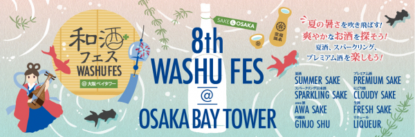 地方創生を応援する和酒フェス大阪実行委員会は、「第8回和酒フェス@大阪ベイタワー」を大阪環状線と大阪メトロ中央線の「弁天町駅」に直結する大阪ベイタワー・アトリウム(大阪市港区)で7月13日(土)と14日(日)に、第1部は12時から14時10分、第2部は15時から17時10分に開催いたします。