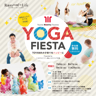 今年も地域の方、パパママ&子どもたちを応援する気持ちこめて「YOGA FIESTA」を11月までに合計4回開催していきます。また、一般社団法人Ponte富山と連携し、子どもスタッフを受け入れし職業体験を実施します。