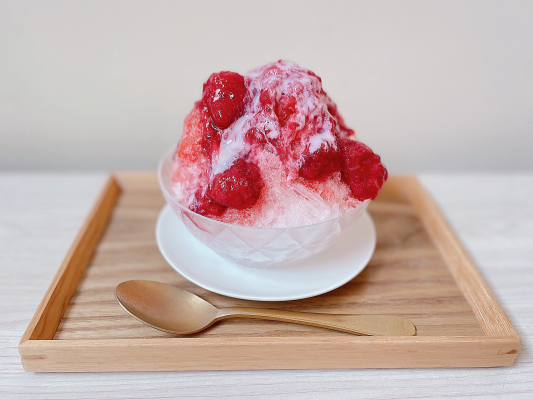ごろっとした大粒のいちごがたっぷりと乗った、くくりひめ珈琲人気No.1の贅沢なかき氷です。ひんやりとした氷の上に、鮮やかな赤色のいちごが美しく輝き、いちごの風味が口いっぱいに広がります。そして、自家製木苺ソースといちごソースの酸味に甘い練乳のクリーミーな口当たりが加わり、ひんやりとしたかき氷の爽やかさと相まって至福のひとときを演出します。
