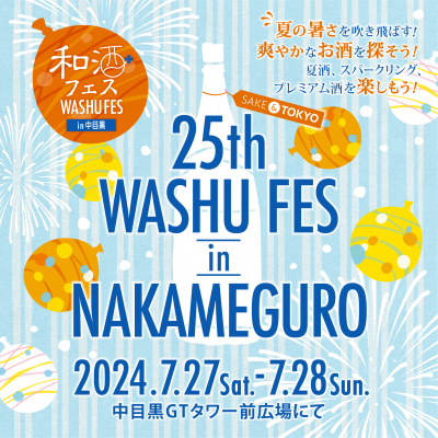 地方創生を応援する和酒フェス実行委員会は、「第25回和酒フェスin中目黒」を東京メトロ日比谷線と東急東横線(東京メトロ副都心線直通)の「中目黒駅」に隣接する中目黒GTタワー前広場(東京都目黒区)で7月27日(土)と28日(日)に、第1部は12時から14時10分、第2部は15時から17時10分に開催いたします。