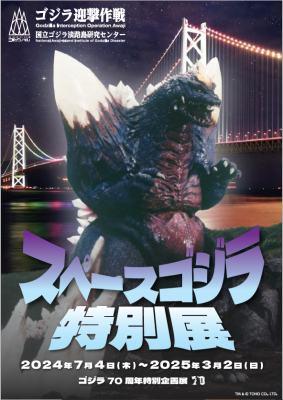 本企画展では、ゴジラファンの中でも特に人気の高い、1994年に公開された『ゴジラVSスペースゴジラ』の世界をさまざまな展示でお楽しみいただけます。特に、「スペースゴジラ」と究極の対G兵器「M.O.G.E.R.A.」の実際に撮影に使用されたスーツ展示は、世界でも観覧できる機会の少ない稀少な展示物です。そのほか、劇中の名シーンを集めた大型パネルやゴジラとともにスペースゴジラに立ち向かう「リトルゴジラ」の紹介展示など、ファン大興奮間違いなしの企画となっています。