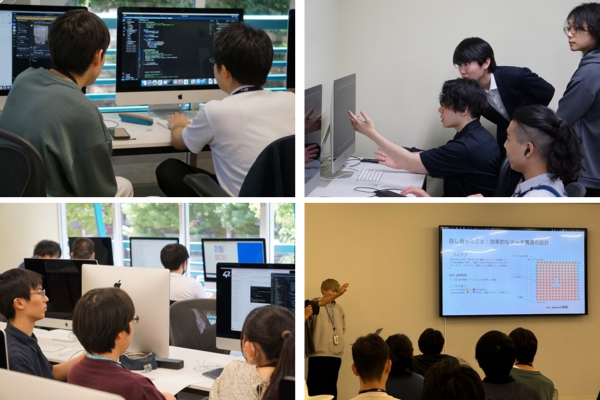 前半日程はグループに分かれてチーム内での役割分担や進捗管理、コミュニケーションの取り方など、チーム開発ならではのスキルを習得してもらいました。後半日程では開発と並行しながら発表資料の作成を行ってもらい、最終日には各チームがどのようなプレイヤーを開発したかの成果発表を行い、それぞれのAIプレイヤーで対決しました。時間が限られている中、参加者全チームが開発を終えることができ、予想以上の成果物を完成させることができました。
