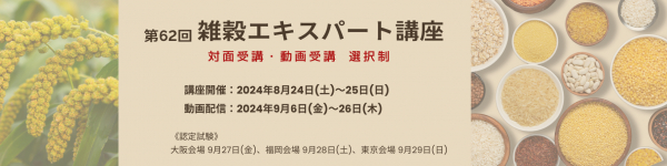 雑穀の普及に取り組む一般社団法人日本雑穀協会は、第62回雑穀エキスパート講座の受講お申込み受付を6月21日(金)より開始いたしました。