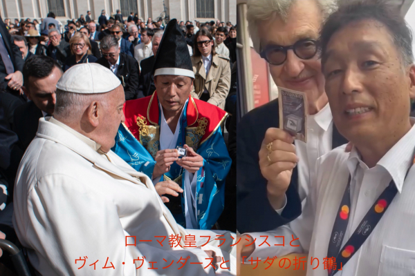 樽谷はカンヌ国際映画祭でヴィムにインタビューした際、自身もローマ教皇フランシスコと謁見した旨をつたえ、その際、日頃から平和の願いを伝える活動として行っている、唯一被爆国の日本人の1人として核兵器廃絶を目指し、広島で被爆して12歳で亡くなり、平和記念公園の「原爆の子の像」のモデルになった佐々木禎子さんが残した折り鶴のレプリカ「サダコの折り鶴」を世界各国を巡り、世界の要人に手渡し、平和の願いを伝える活動を行っており、2024年4月24日ローマ教皇フランシスコに特別謁見した際も直接手渡した事を伝え、ヴィムにも「サダコの折り鶴」のレプリカを寄贈し世界平和の思いを伝えた。