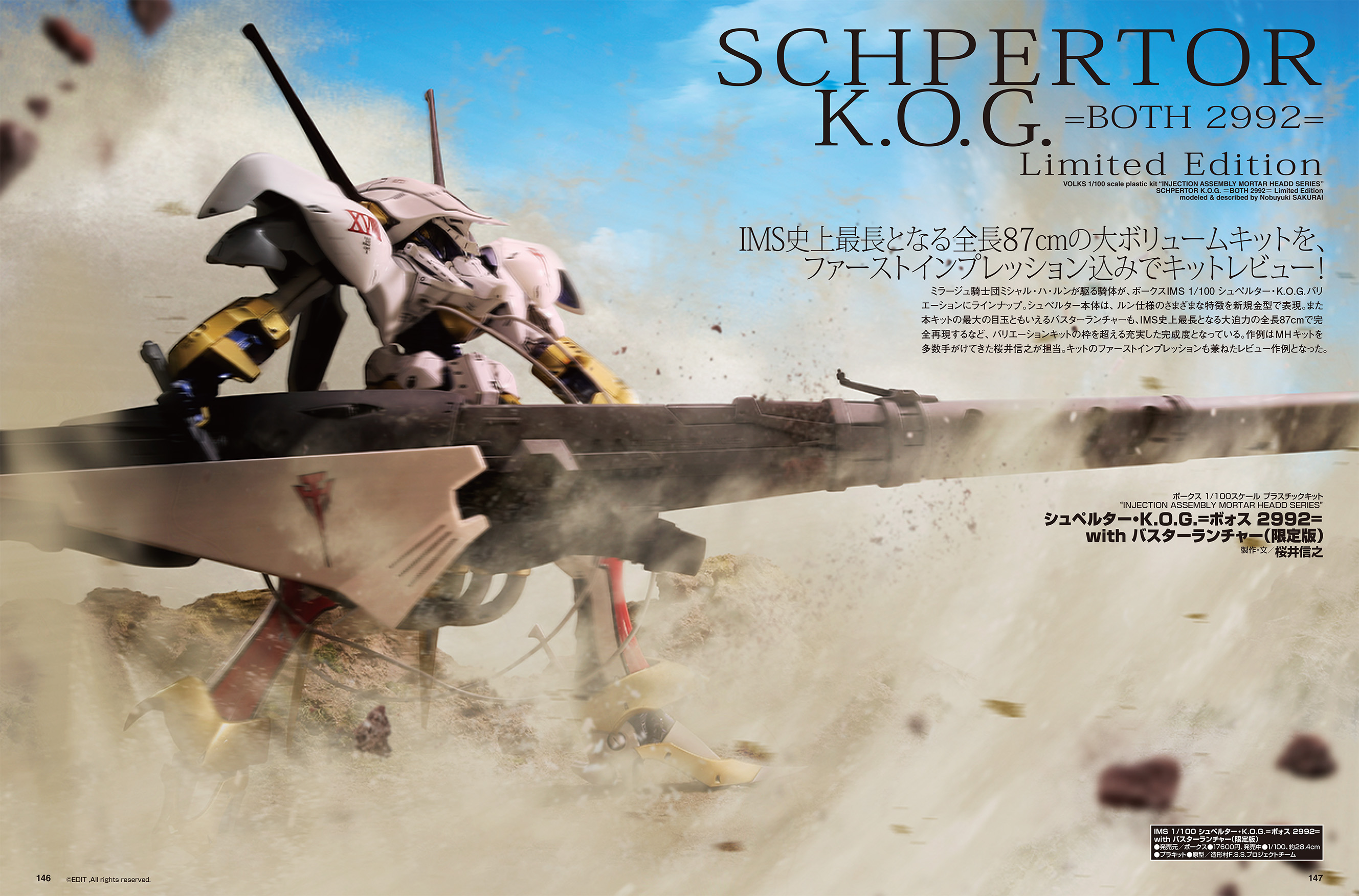 『ファイブスター物語』より、「IMS 1/100 シュペルター・K.O.G. =ボォス 2992= with バスターランチャー(限定版)」のキットレビュー作例をお届け!作例はMHキットを多数手がけてきたプロモデラー・桜井信之が担当。キットのファーストインプレッションも兼ねたレビュー作例となっております。
