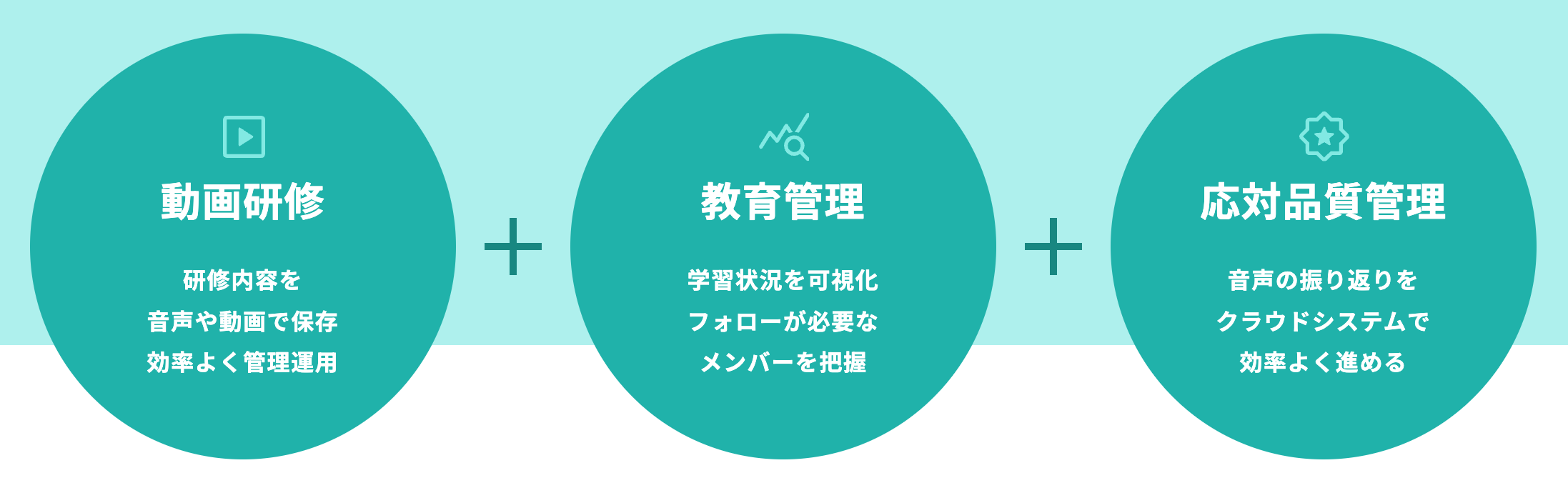 shouin for コンタクトセンターは、企業の顧客対応業務に携わるすべての方が、継続的にスキルアップしていくことができるコンタクトセンター業界特化型のオンライン教育ソリューションです。柱となる「動画研修」「教育管理」「応対品質管理」の3つの機能によって、学習の自動化と人材教育業務全体の効率化を実現できる点が特長です。